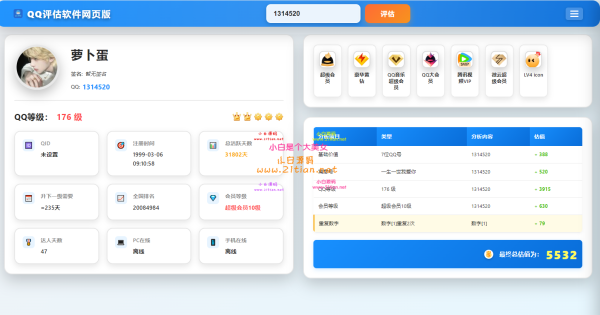 基于前端三要素的QQ评估查询工具源码(含API接口)